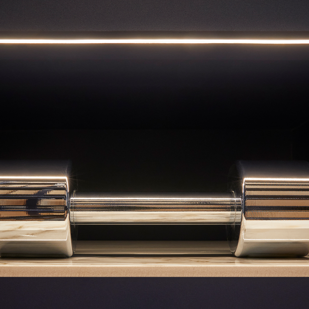 In addition, the bench is enhanced with a neon flex LED that runs around its perimeter and drawers, adapting precisely to any shape and adding a modern and functional touch.
