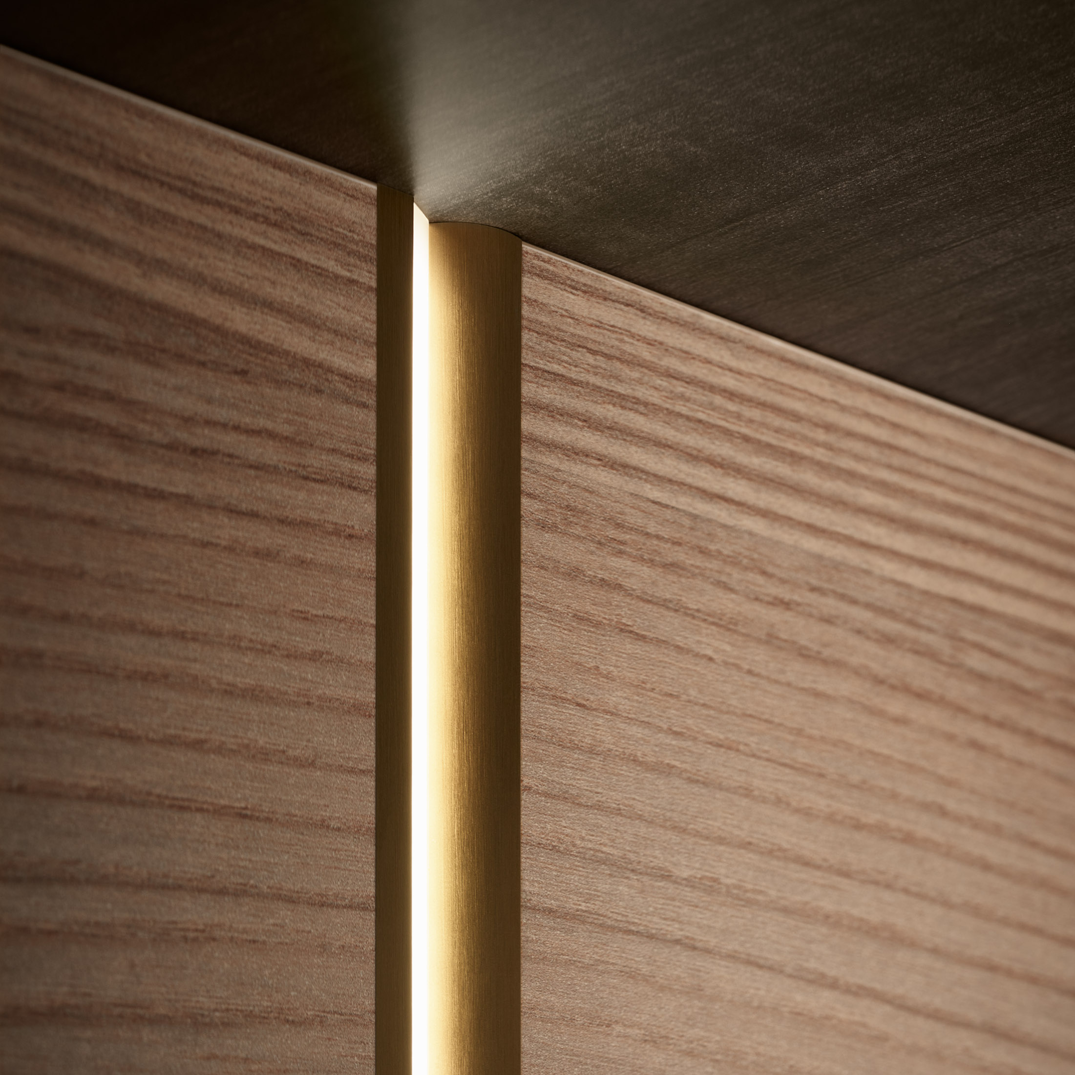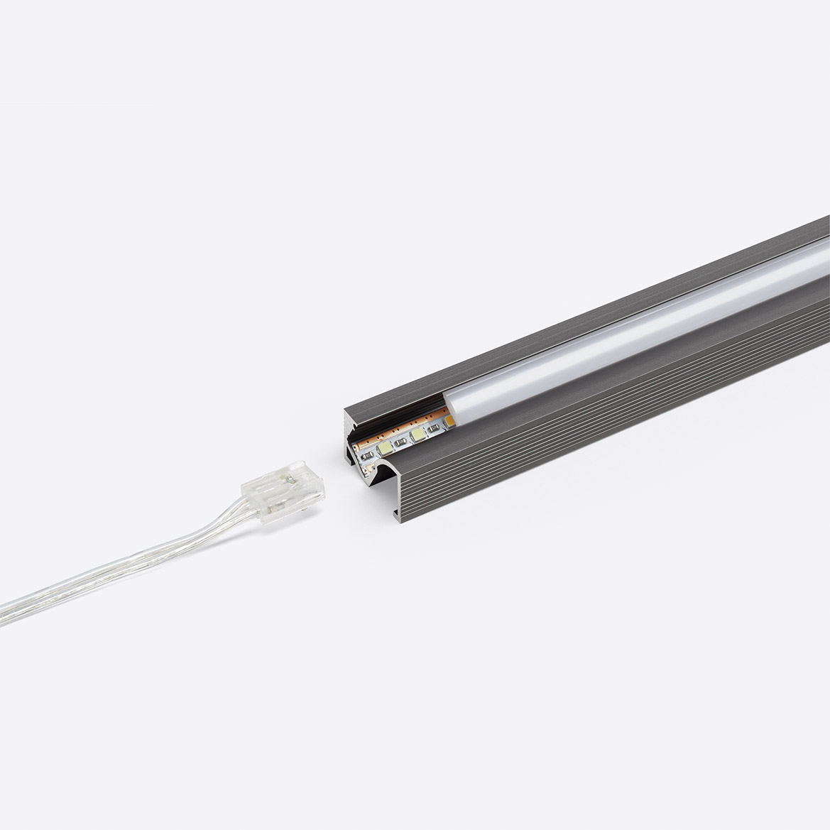 Tech. Profil encastrable avec design d’éclairage angulaire et sans points LED. Disponible en barres de 2,5 m en couleur titane ou bronze, fourni avec bande LED et couverture montée. Possibilité de couper à la mesure. Recommandé pour l’éclairage des vitrines et armoires.