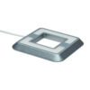 Cube, spot de surface à haute luminosité sans points LED en couleur titane. Avec double câble pour connexion en ligne facile et fixation par système magnétique. Recommandé pour l’éclairage des plans de travail et vitrines.
