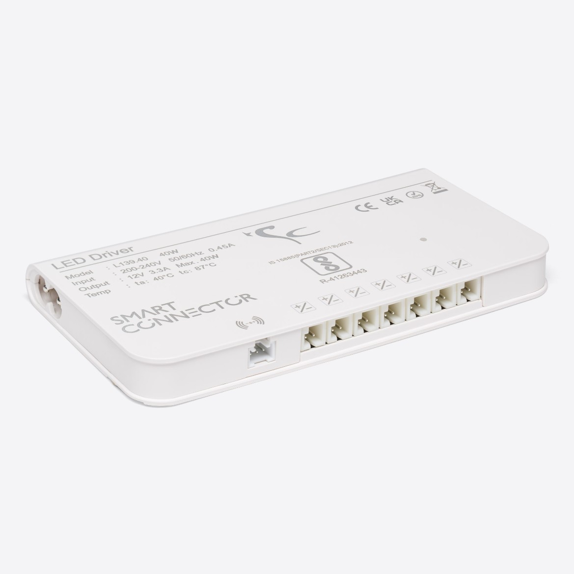 Transformateur compact et fin avec jusqu’à 7 sorties LED et une sortie capteur. Câble d’alimentation de 1,8 m inclus. 8 capteurs aux fonctions différentes sont disponibles, filaires et sans fil.