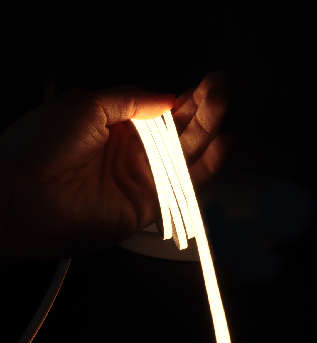 Este LED neón flex presenta una luz uniforme, clara y sin puntos gracias a tener 240 LED/m. Su profundidad de 4,5 mm es ideal para espacios y mecanizados pequeños. Gracias a esto, debilita menos el mueble al realizar la ranura y es perfecto para iluminar funcionalmente espacios sin aumentar el consumo.